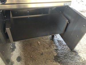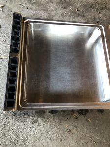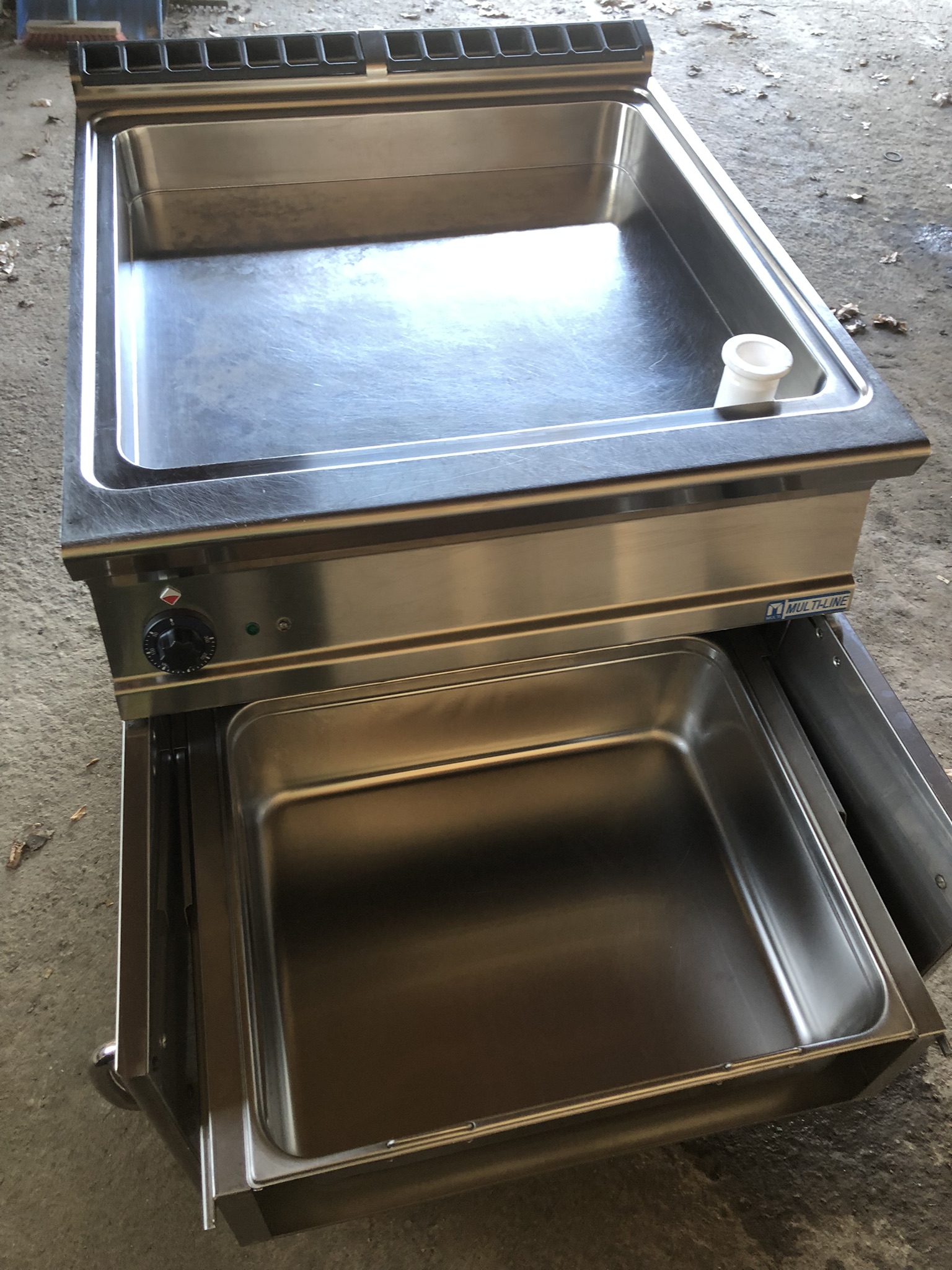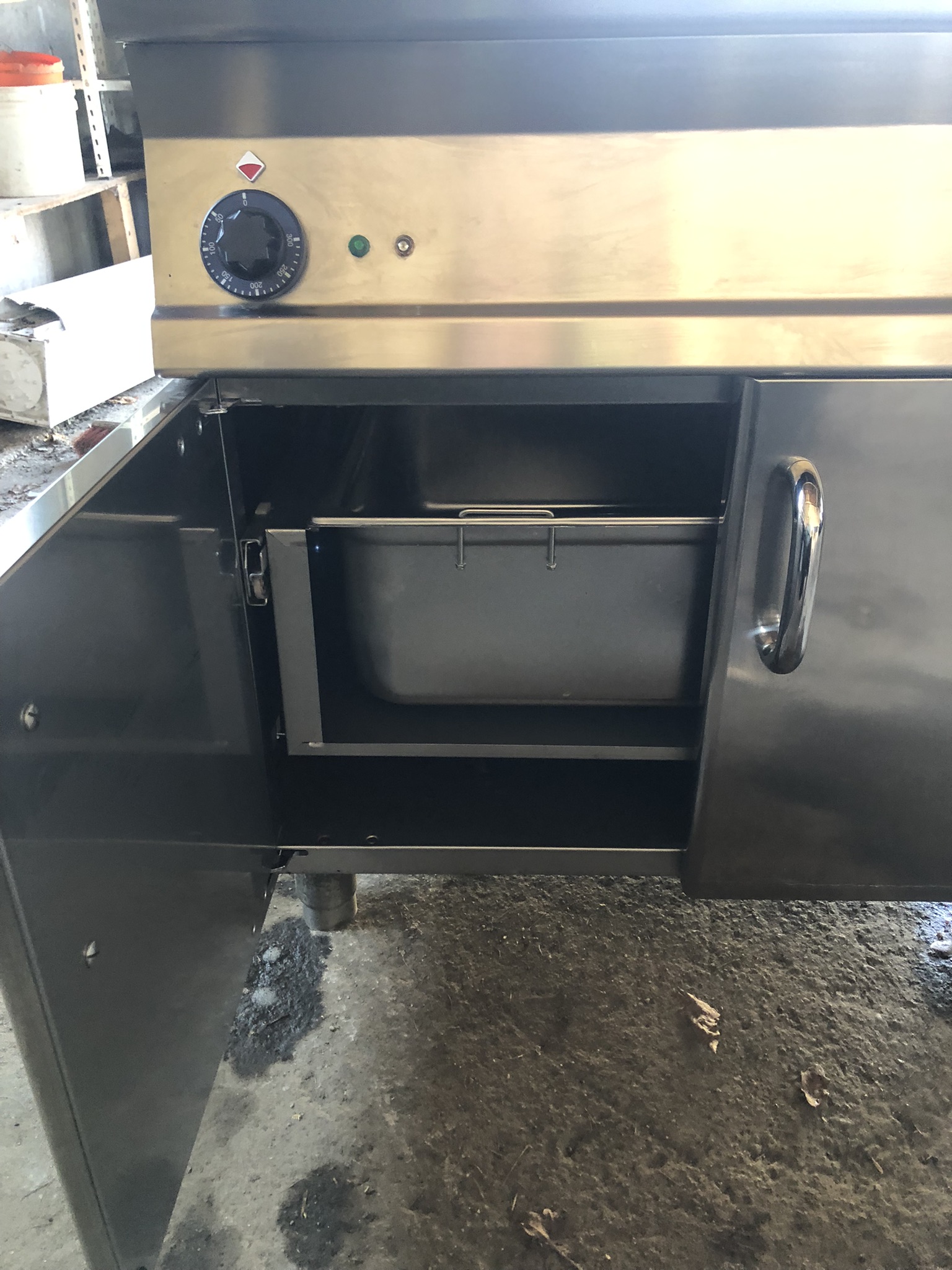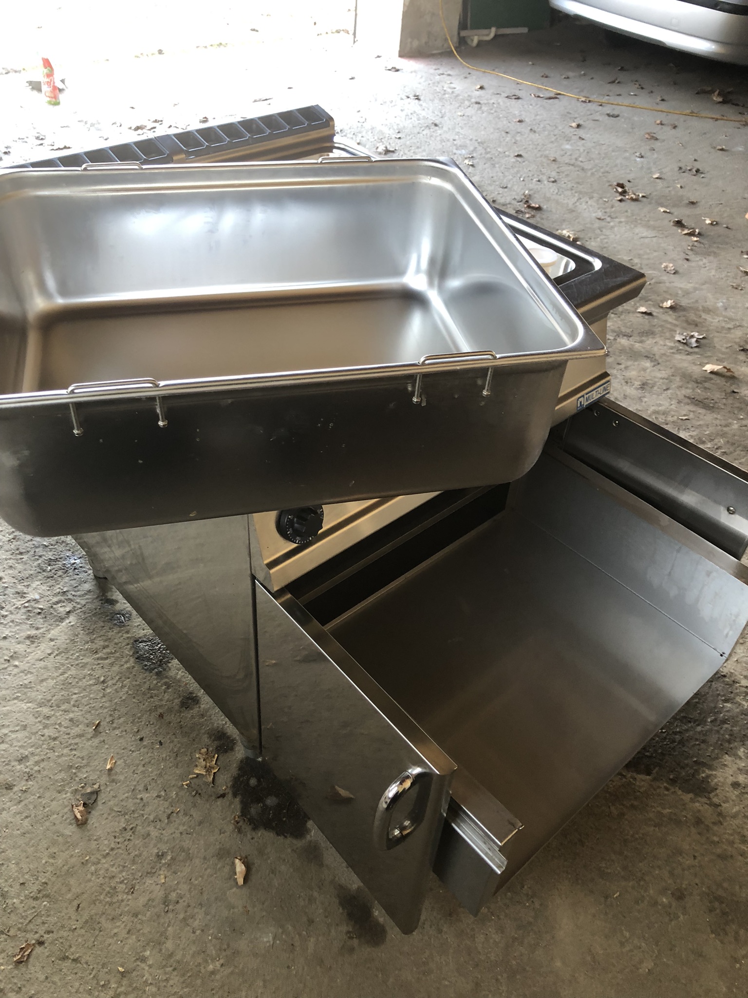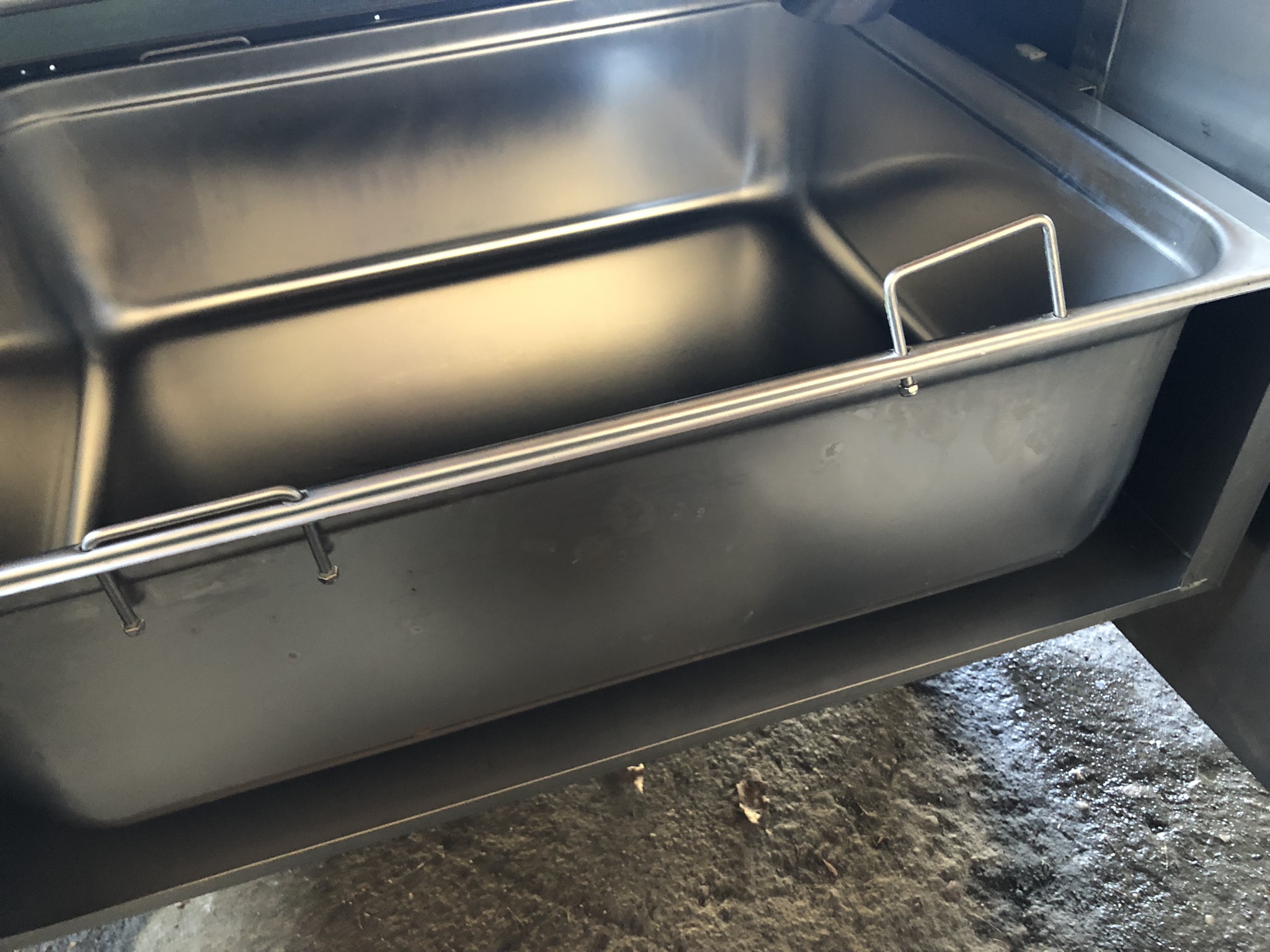 - Die Fettwanne befindet sich im Unterbau und ist auf Teleskopschienen herausziehbar